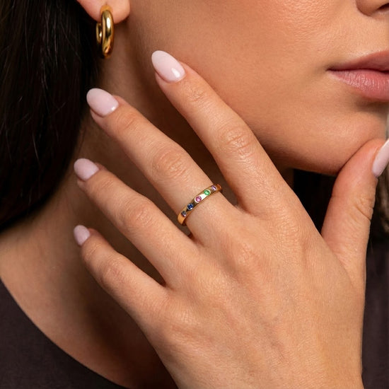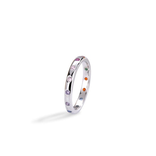 El Anillo Colors Orbit plata combina pequeñas gemas en tonos vibrantes que aportan luz y alegría a cualquier look. Su diseño fino y moderno lo convierte en el complemento perfecto para llevar solo o junto a otros anillos, creando combinaciones llenas de personalidad. Ideal para quienes aman los detalles que destacan sin esfuerzo. 💛💙💗