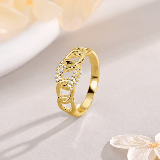 Anillo Eslabones Sparkle plata baño en oro de 18kt