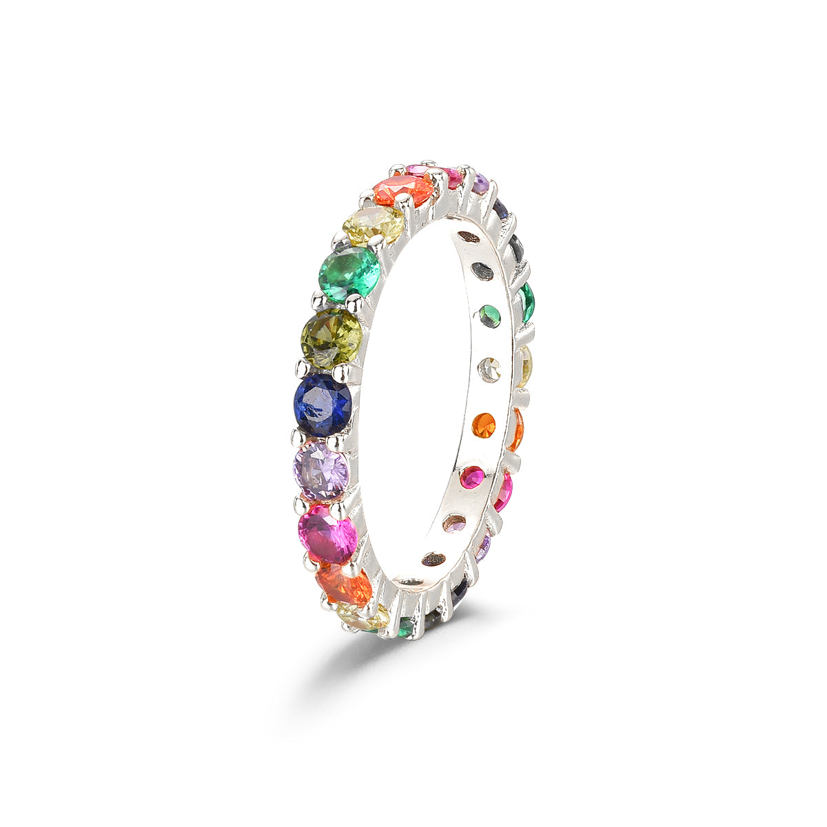 El Anillo Iris bomb plata es una explosión de tonos vibrantes que rodean toda la pieza, creando un arcoíris irresistible. Si te encantan las joyas que transmiten alegría, energía y ese toque muy tú, este anillo será tu favorito. Llama la atención sin pedir permiso y convierte cualquier look en un momento brillante. 🌈💫