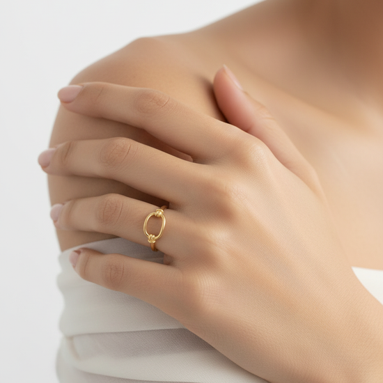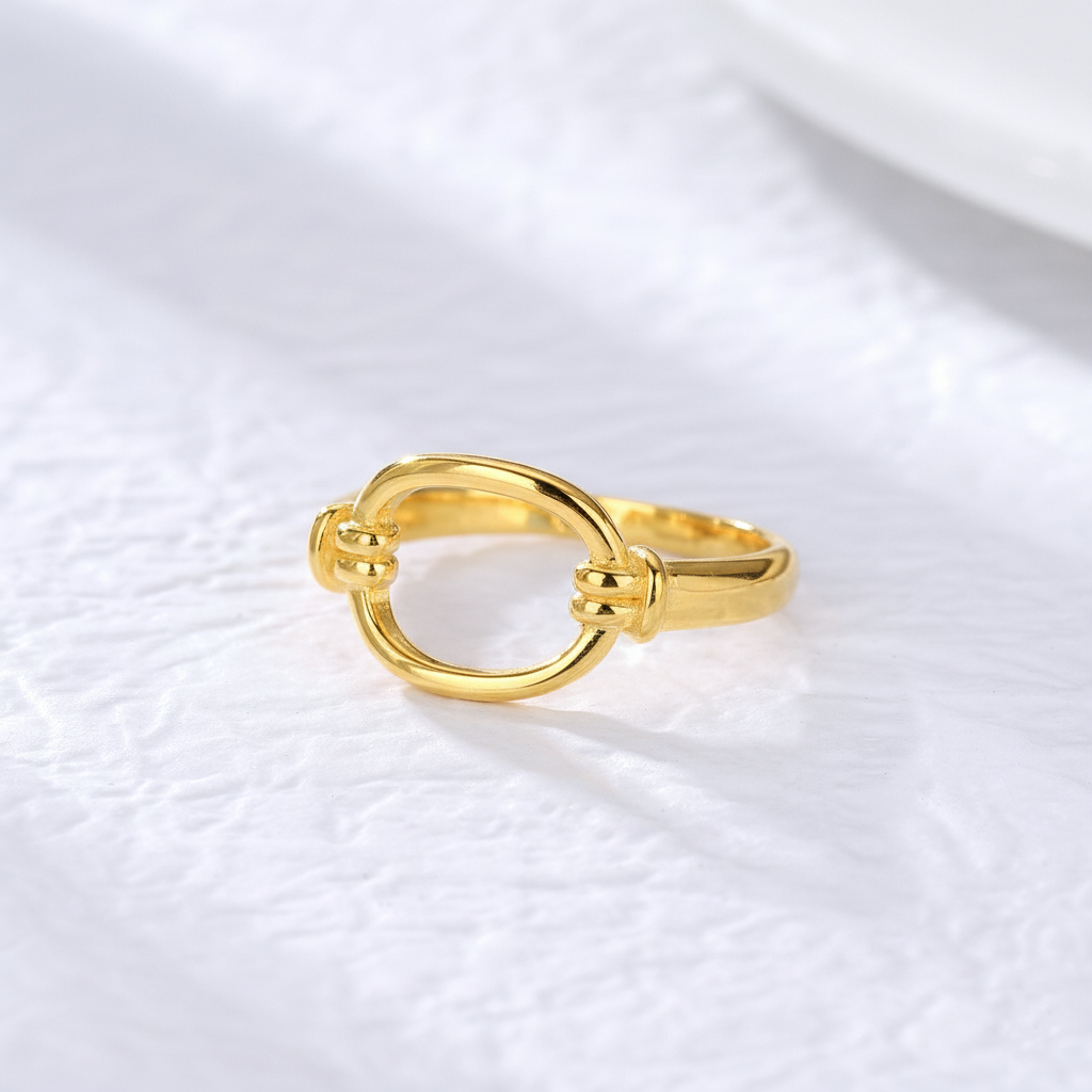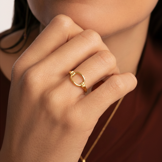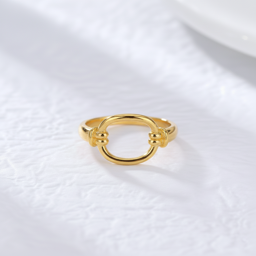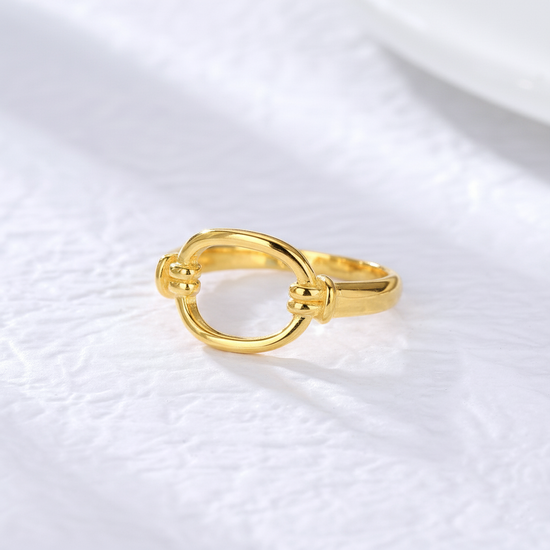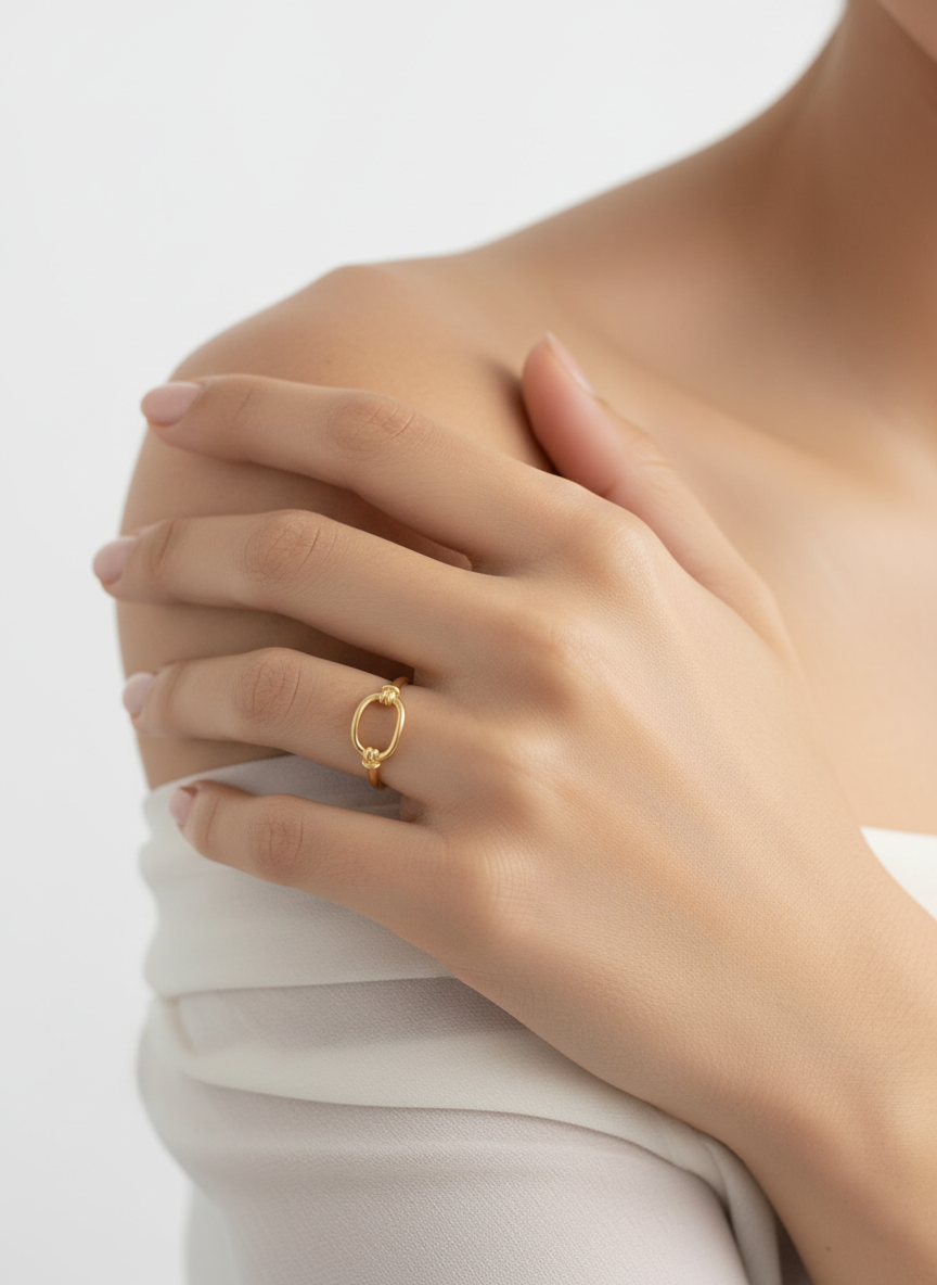 El Anillo Loop Essence baño en oro de 18kt destaca por su forma ovalada abierta, un estilo minimalista que aporta elegancia sin esfuerzo. Es perfecto para quienes buscan una joya diferente, ligera y con mucha personalidad. Ideal para llevar a diario o para combinar en looks más sofisticados. 🤍