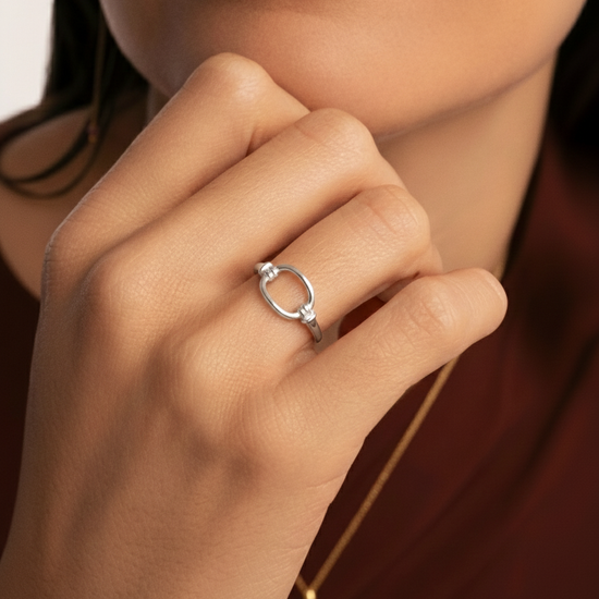 El Anillo Loop Essence plata destaca por su forma ovalada abierta, un estilo minimalista que aporta elegancia sin esfuerzo. Es perfecto para quienes buscan una joya diferente, ligera y con mucha personalidad. Ideal para llevar a diario o para combinar en looks más sofisticados. 🤍