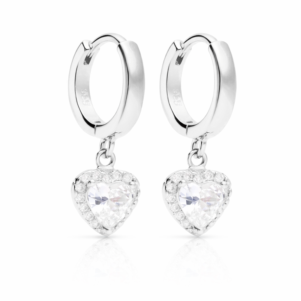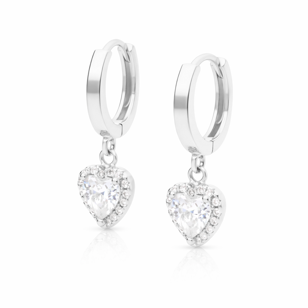 Brillan, se mueven y llaman la atención sin pedir permiso ✨ Aros plateados con un corazón colgante lleno de luz, pensados para esos días (y noches) en los que te apetece algo especial pero nada exagerado. Dulces, sí. Previsibles, nunca 💛