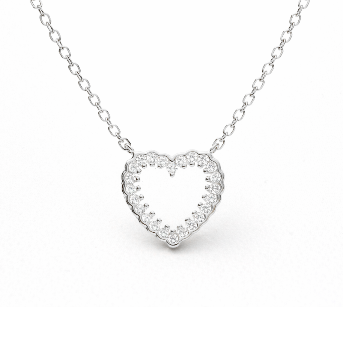 Un corazón plateado con circonitas que brilla lo justo y dice mucho sin levantar la voz ✨ Ligero, delicado y perfecto para llevar solo o mezclado con otras cadenas cuando te apetece un look más personal 💫
