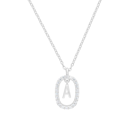 Collar Letter Crystal Oval plata