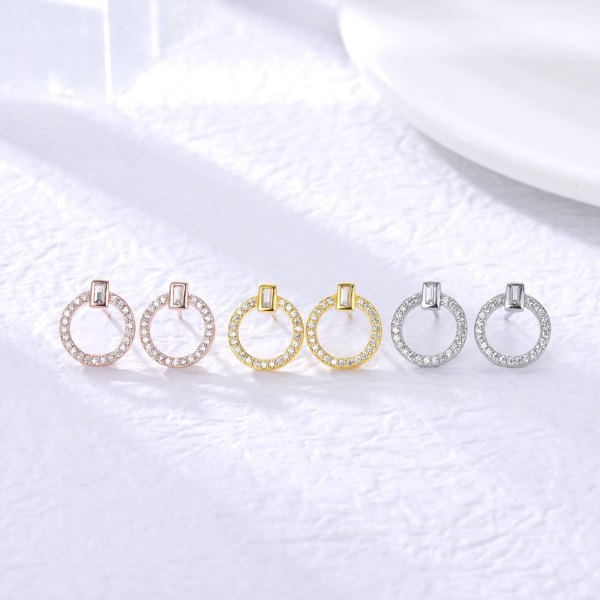 Los Pendientes Circle Light plata combinan un aro con circonitas y un detalle rectangular central que aporta un toque moderno y diferente. Sutiles, luminosos y fáciles de llevar a diario ✨💛