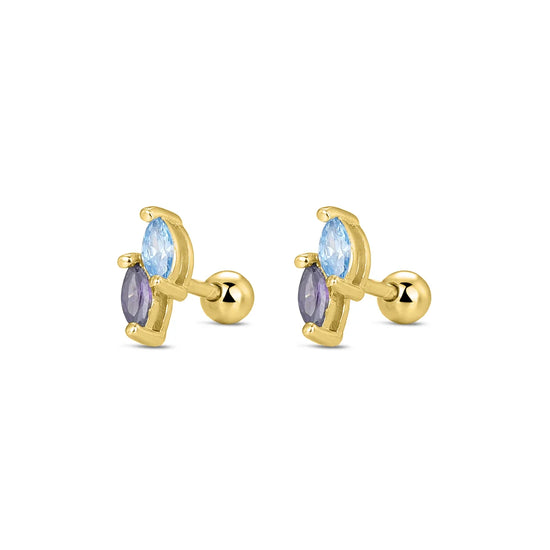 Los Pendientes Color Duo Mini plata baño en oro de 18kt son pequeños, cómodos y perfectos para llevar a diario o combinar con otros pendientes. Un toque de color sutil que suma sin robar protagonismo ✨