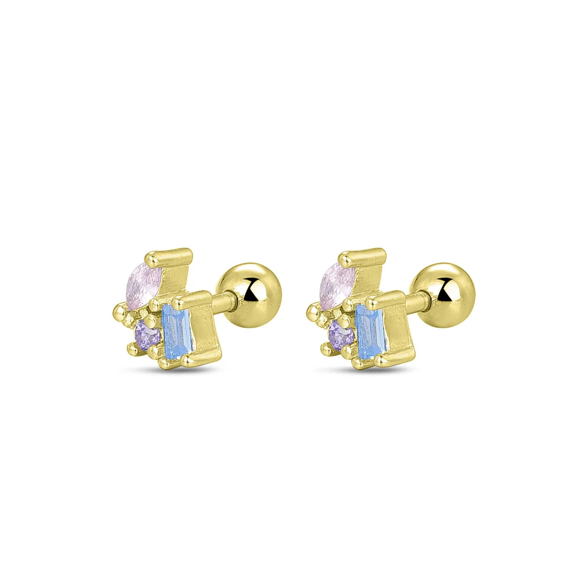 Los Pendientes Color Pop Mini plata baño en oro de 18kt combinan circonitas de distintos colores en un diseño mini que queda ideal solo o combinado con otros pendientes. Perfectos para dar un toque divertido y luminoso a tu día a día, sin pasarse.
