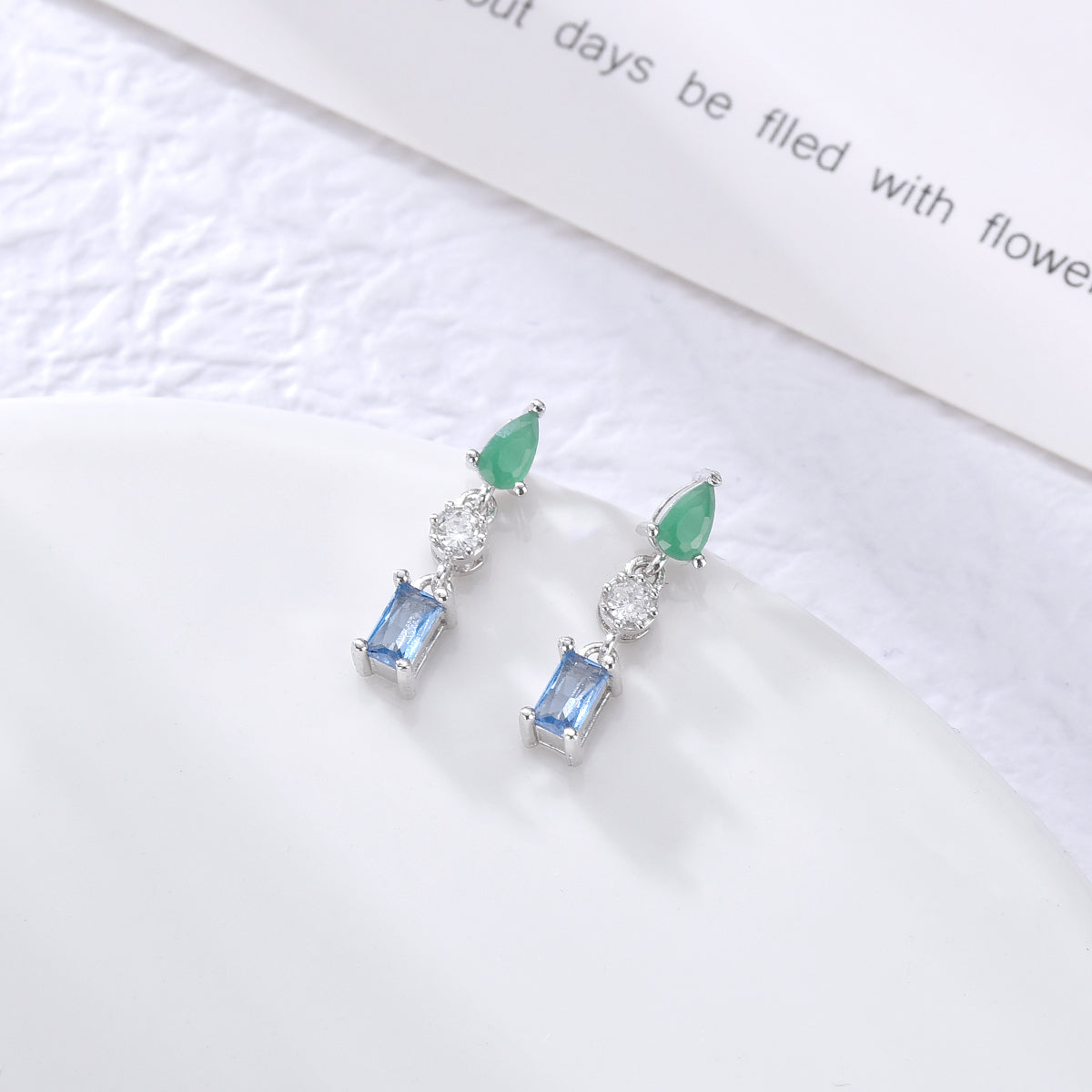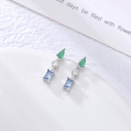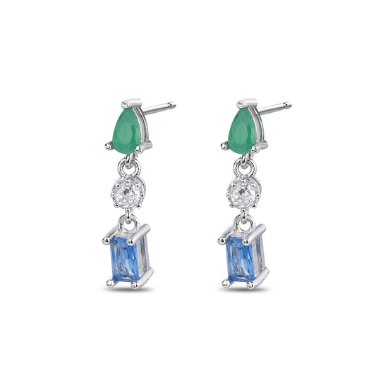 Los Pendientes Gem Drops plata combinan una lágrima verde, un destello blanco y un toque azul que cae con movimiento. Son delicados, modernos y perfectos para añadir color sin perder elegancia. El típico pendiente que ilumina la cara al instante. 💙💚
