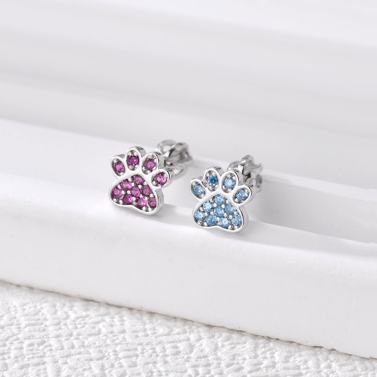 Los Pendientes Paw Spark plata deslumbran con mini circonitas de color que forman una huellita adorable. Son pequeños, luminosos y perfectos para llevar cada día como un guiño lleno de cariño.