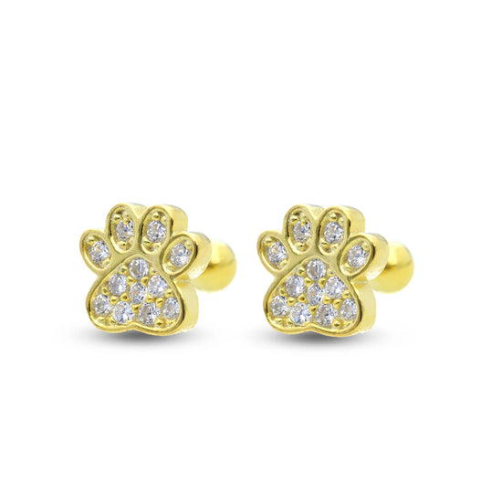 Los Pendientes Paw Spark plata baño en oro de 18kt deslumbran con mini circonitas de color que forman una huellita adorable. Son pequeños, luminosos y perfectos para llevar cada día como un guiño lleno de cariño.