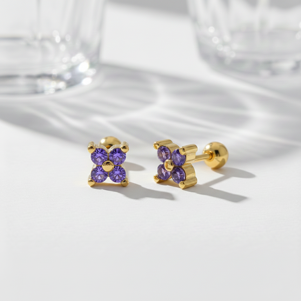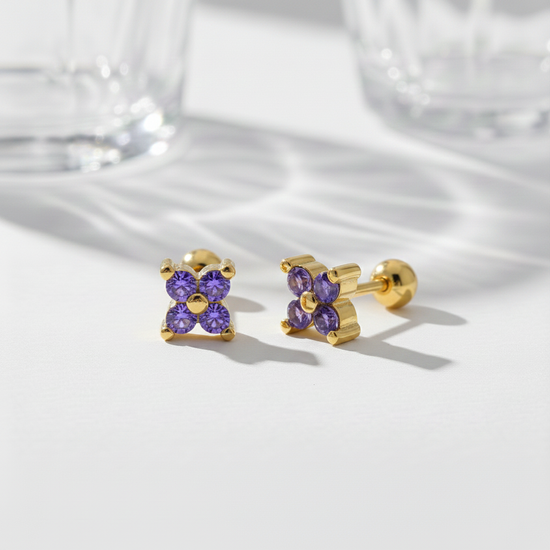Los Pendientes Shine Mini morado baño en oro de 18kt son de esos pendientes que no te quitas: discretos, luminosos y perfectos para el día a día (o para combinarlos sin parar).
