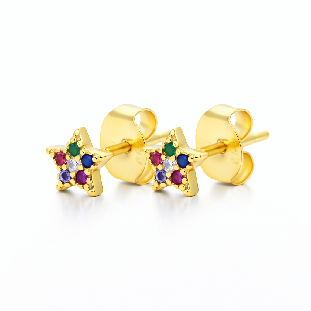Los Pendientes Star Pop Mini multicolor baño en oro de 18kt son pendientes de plata pensados para llevar todos los días, solos o combinados, y darle un toque especial a cualquier look sin complicarte.