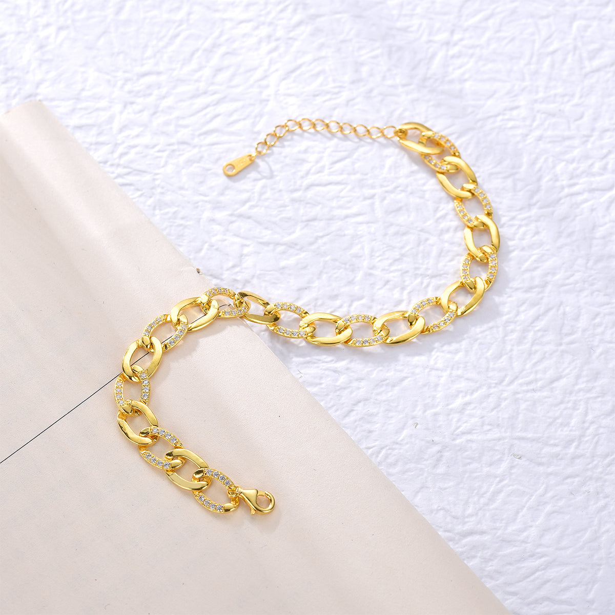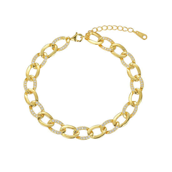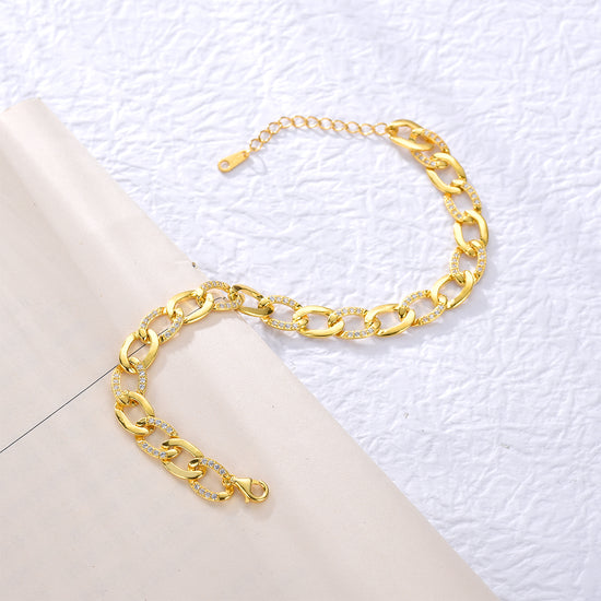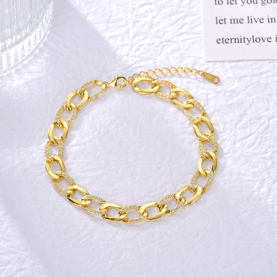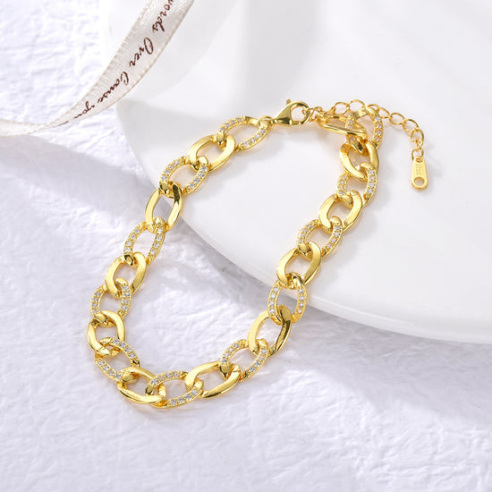 Brillo y carácter en cada eslabón ✨ La combinación de piezas lisas con otras llenas de destellos crea un efecto potente que no pasa desapercibido 💛 Tiene presencia, estructura y ese aire sofisticado que transforma cualquier conjunto en algo mucho más especial 💫 Perfecta para llevar sola y dejar que hable por sí sola.